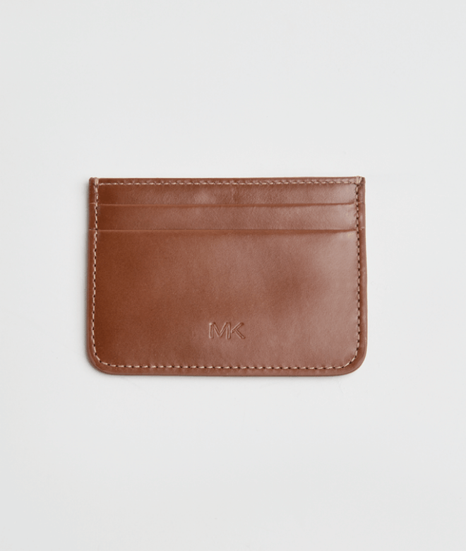 Porta Cartão Makenji confeccionado em couro marrom liso. Possui quatro compartimentos para guardar cartões e e CNH. Logo MK no tom da peça.
