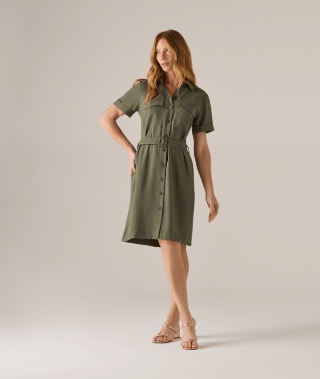Vestido com modelagem curta , ideal para composições modernas. Possui decote em gola de camisa e abertura frontal com botões personalizados, que adicionam sofisticação e exclusividade ao design. Os bolsos frontais com lapela unem estilo e praticidade, trazendo um toque utilitário à peça. Acompanha cinto do mesmo tecido, que permite ajustar a cintura e valorizar a silhueta com charme. Atemporal e funcional, é perfeito para uso no dia a dia ou em ocasiões que pedem elegância descontraída.